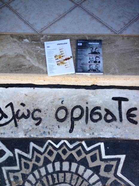 Αγαπητέ Πιτσιρίκο, ζούμε στο Αγρίνιο, μια πόλη των άκρων, με πολύ ΠΑΣΟΚ, αναρχία και Χριστιανισμό (κακώς νοούμενο). Γι’ αυτό λοιπόν, σου στέλνω το Unfollow μπροστά από τη χριστιανική ένωση Αγρινίου και έπεται συνέχεια. (Αγαπητή φίλη, ευχαριστούμε πολύ. Ο Θεός να βάλει το χέρι Του, για να ξεκουβαλήσει το ΠΑΣΟΚ και να ζήσουμε αναρχοχριστιανικά. Αμήν.)