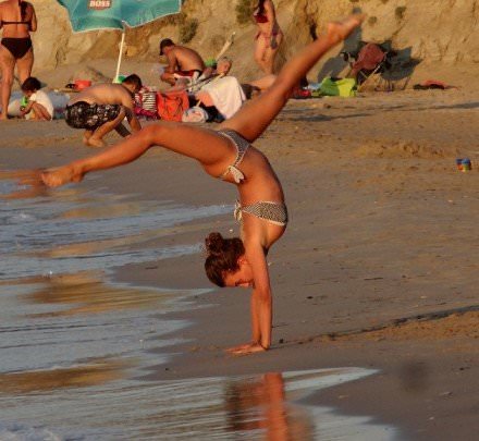 (Η καλλίπυγος κορασίδα στη φωτογραφία είναι εμφανές πως έχει κάνει ενόργανη και έκανε εξαιρετικές κωλοτούμπες στην παραλία. Την θαύμαζα επί ώρες. Αν και μάλλον είναι Ιταλίδα, νομίζω πως πρέπει η κυβέρνηση να την διορίσει κάπου. Το ‘χει.)