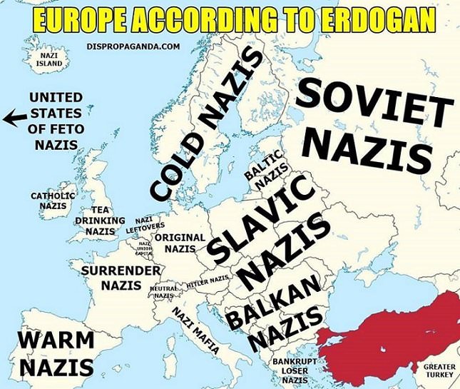 Ο Ερντογάν θα έκανε μια πολύ μεγάλη χάρη στην Ευρωπαϊκή Ένωση αν έκανε λόγο όχι για τους Ολλανδούς και τους Γερμανούς αλλά για τους Ευρωπαίους που είναι φασίστες.