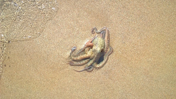 “The Medicane” έδειξε ενημερωμένος εκείνος, ενώ μετά μαζί με τα σκουπίδια που μάζεψα από τον βυθό, έφερα για λίγο και ένα χταποδάκι στην ακρογιαλιά για να το δουν τα παιδάκια του, που έδειχναν ενθουσιασμένα, πριν το αφήσω και πάλι στα βαθιά.