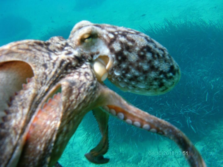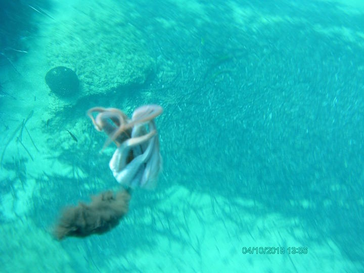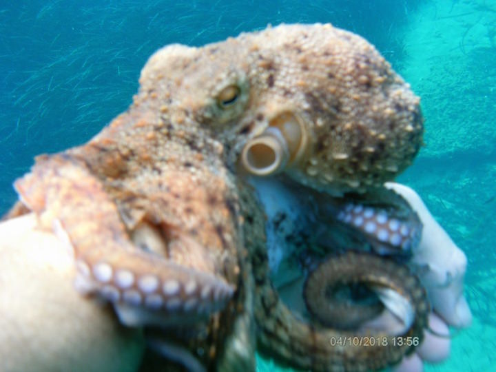 Πιτσιρίκο, έσωσα ένα χταπόδι, πιάνοντάς το πριν το δει ένας τύπος με καμάκι, που, αν και φορούσε βατραχοπέδιλα, έφαγε τις μπουρμπουλήθρες μου.