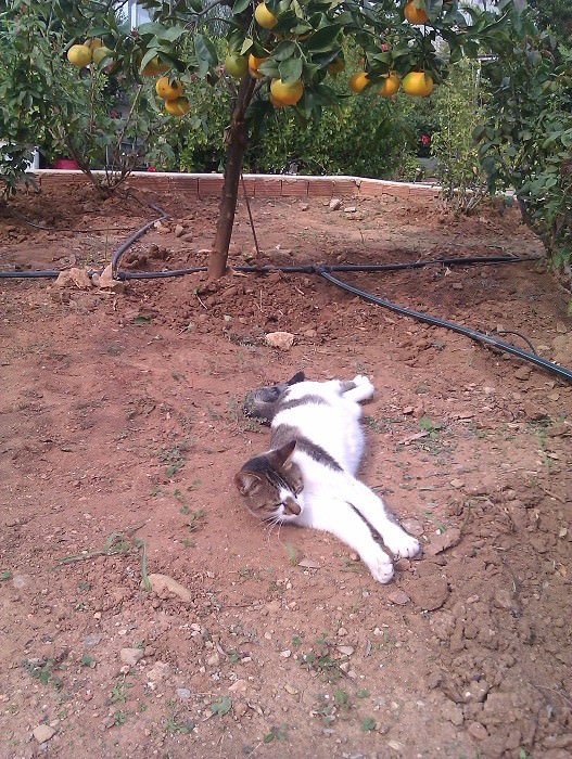 Τη γατούλα που έχει αράξει, ωστόσο, κάτω από την πορτοκαλιά δεν φαίνεται να την απασχολεί και ιδιαίτερα η επόμενη μέρα.
