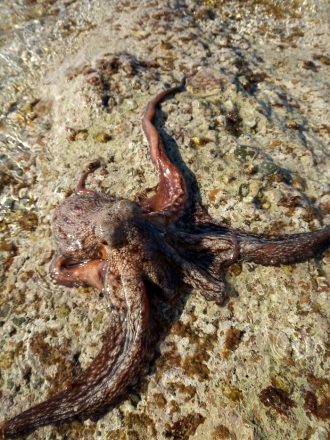 Παρ’ όλα αυτά, ελάχιστα θα φτάσουν στο μέγεθος που έχει το χταπόδι της φωτογραφίας.