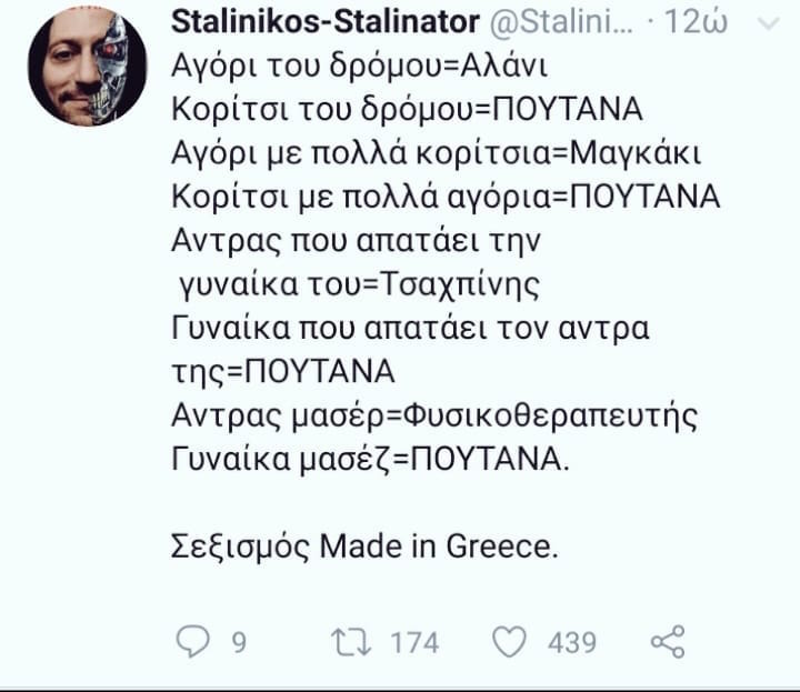 Είναι οι ίδιοι τύποι που ωρύονται ότι οι “λαθρο” θα μας βιάσουν τις γυναίκες και που αποκαλούν όλες τις γυναίκες -εκτός από τη μάνα και την αδερφή τους- πουτάvες.
