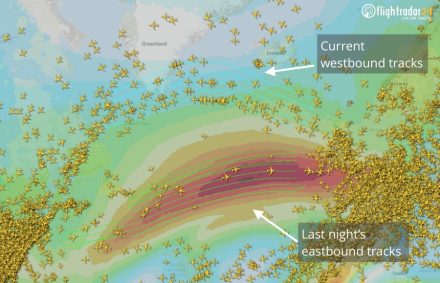 Μάλιστα, τα αεροπλάνα που διέσχιζαν τον Ατλαντικό από τα ανατολικά προς τα δυτικά, κινούνταν για λόγους ασφαλείας και εξοικονόμησης καυσίμων, βορειότερα ή νοτιότερα από τον αεροχείμαρρο, που είχε αναπτυχθεί ανάμεσα στον αντικυκλώνα στις Αζόρες και στον αυλώνα της Ισλανδίας.