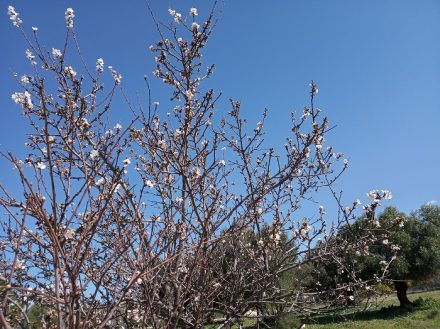 Στις ανθισμένες αμυγδαλιές, που ήταν γεμάτες μέλισσες.