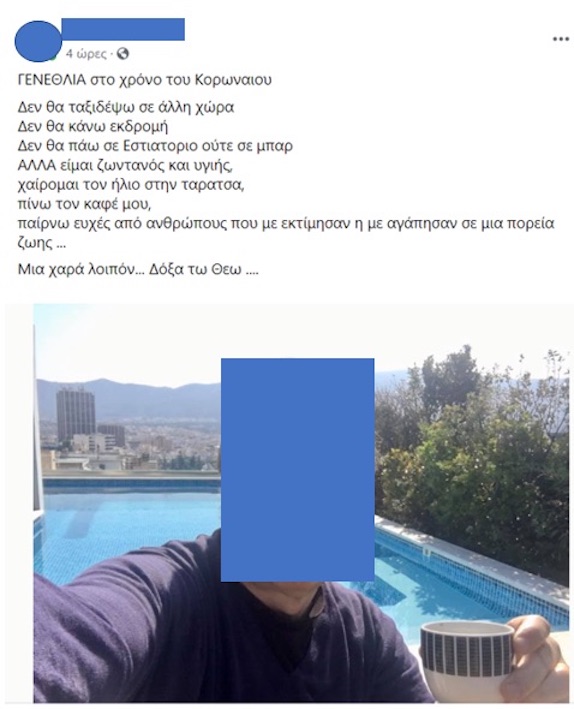 Μπρος στην υγεία, στον ήλιο μιας ταράτσας και τις ευχές των φίλων για τα γενέθλιά σου, καμία σημασία δεν έχουν τα μπαρ, οι εκδρομές και οι λοιπές μικροαστικές συνήθειες, που κόπηκαν μαχαίρι λόγω του κορωνοϊου.