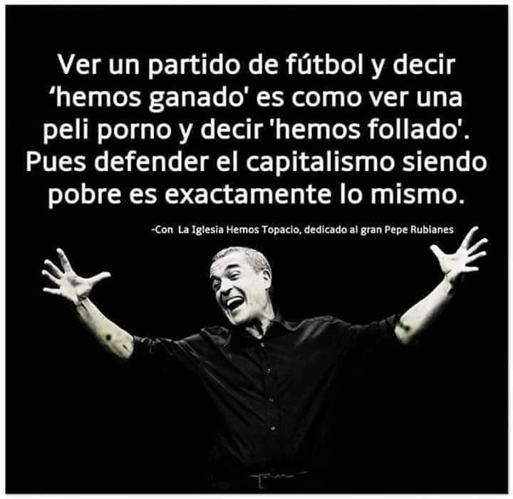 (Το να βλέπεις έναν ποδοσφαιρικό αγώνα και να λες “νικήσαμε” είναι σαν να βλέπεις μία ταινία πoρνό και να λες “γ@αμήσαμε”. Το να υπερασπίζεσαι τον καπιταλισμό, ενώ είσαι φτωχός, είναι ακριβώς το ίδιο.)