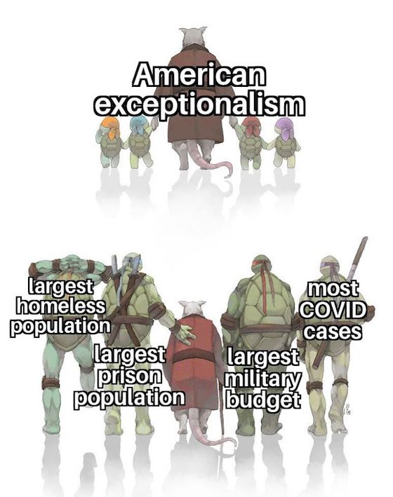 Υ.Γ. Και βέβαια, έχουμε μια ολόκληρη μέρα αφιερωμένη στη μνήμη των θυμάτων, των δικών μας νεκρών στους πολέμους που συνήθως εμείς ξεκινάμε. Για τα θύματα των άλλων, who gives a shit. Αν και μεταξύ μας θα ήταν απίστευτα προκλητικό να τιμά τη μνήμη των θυμάτων του, αυτός που τους σκότωσε. Οπότε, Memorial Day, δηλαδή Μέρα Αμνησίας. Γιατί ο αμερικανικός πατριωτισμός είναι το τελευταίο καταφύγιο των …Αμερικανών. Αν και τα τελευταία χρόνια αυξήθηκε σημαντικά ο αριθμός των Αμερικανών που όταν ακούει “failed state” σκέφτεται τις ΗΠΑ. Και δεν χρειαζόμασταν μια πανδημία για να το αντιληφθούμε. Καλά, τι λέω, εδώ κάποιοι δεν το έχουν αντιληφθεί ούτε μετά από πανδημία. Αλλά γι’ αυτούς περισσότερα σε άλλα κείμενα.
