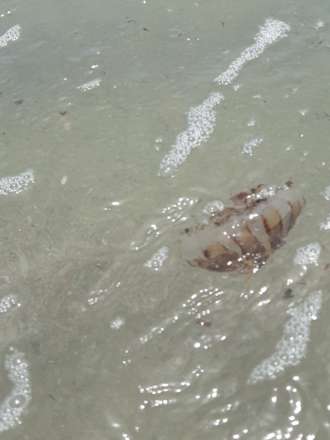 Τσιμπάει κι αυτή σαν την πελαγία την ροζ τσούχτρα (η κοτυλόριζα γνωστή και σαν τηγανητό αυγό και οι διάφανες αουρέλια και ακουάρια δεν τσιμπάνε) ενώ γίνεται και τριπλάσια από ό,τι φαίνεται στη φωτογραφία.