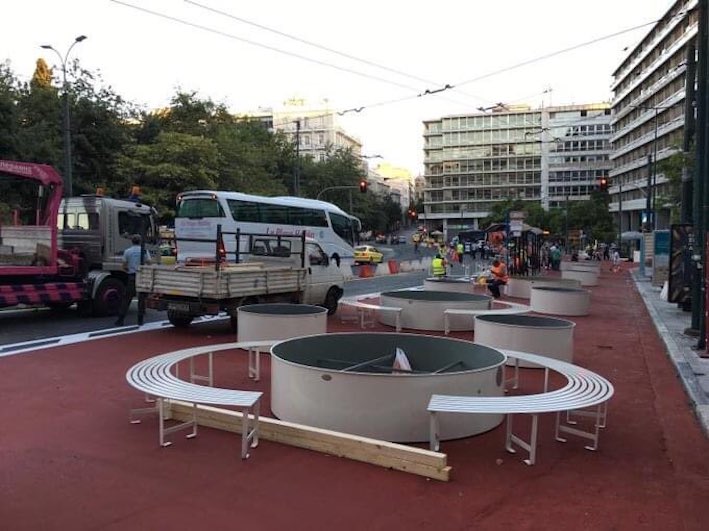 Τι πιο όμορφο από το να καθίσεις και να ξαποστάσεις στο σιδερένιο “καλαίσθητο” παγκάκι που αγοράστηκε στην συμβολική τιμή των 5.200 ευρώ και στέκεται σαν κόσμημα πάνω στην καυτή βαμμένη άσφαλτο;