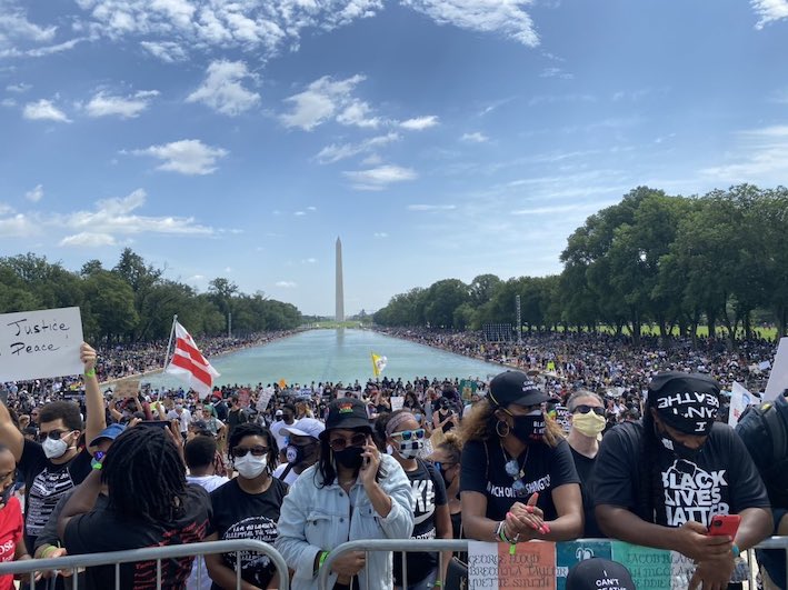 Σε άλλη πορεία, στη Washington D.C., δεκάδες χιλιάδες κόσμου στάθηκαν στο National Mall, σε μια αναβίωση εκείνης της ιστορικής μέρας πριν 57 χρόνια, ενώ μίλησαν μπροστά στον συγκεντρωμένο κόσμο o γιος του King, η μητέρα της Breonna Taylor, o αδερφός του George Floyd και ο πατέρας του Jacob Blake, μεταξύ άλλων.