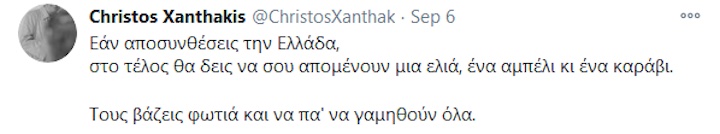 Πρώτη και τελευταία συμβουλή: μακριά από την Ελλάδα και τους Έλληνες.