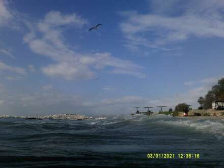 Είχε και θολούρα, όμως, με το κυματάκι και δεν φαινόταν τίποτα στον βυθό, οπότε φωτογράφισα μόνο τους γλάρους και τα χελιδόνια της θάλασσας που πετούσαν μαζί με έναν θαλασσοκόρακα στον γιαλό.