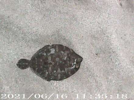 Αν και δεν φαίνεται καλά στη φωτογραφία και τα δύο μάτια της είναι στη μία της πλευρά, επειδή σχεδόν πάντα ακουμπά στον πυθμένα με την αθέατη στη φωτό πλευρά της. Έτσι, πλαγιασμένη κολυμπά κιόλας, τις ελάχιστες φορές που θα σηκωθεί για λίγο από τον βυθό.