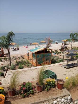 Αφού τοποθέτησαν ομπρέλες και αποχωρητήριο για τους λουόμενους και φύτεψαν δεντράκια και λουλούδια, βάζοντας λίγο πράσινο δίπλα στο απέραντο γαλάζιο.
