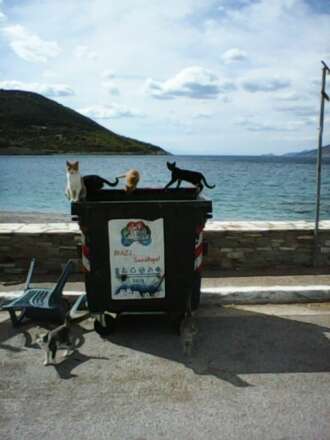 Είχε και αρκετές γάτες στις παραλίες και πρέπει να πεινούσαν, αφού πέταξα κάτι σακούλες, έναν αναπτήρα και μερικά πλαστικά που βρήκα στον πυθμένα, στους κάδους και μπήκαν μέσα.