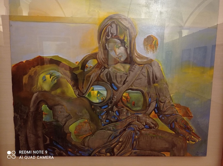 Ο σουρεαλισμός γνέφει στην κλασική Αναγέννηση και ο Νταλί αναπαριστά σε καμβά το εμβληματικό γλυπτό του Μιχαήλ Άγγελου. Μόνο που εδώ οι μορφές δεν είναι μαρμάρινες, αλλά βραχώδεις, μια γεωλογική ηχώ του αναγεννησιακού έργου. Το μάρμαρο της Pieta μετατρέπεται σε διάτρητο βράχο.