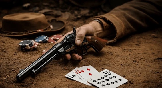 Δύο πιστόλια πάνω στο τραπέζι –για τα ψυχικά ισορροπημένα άτομα– νοηματοδοτούν την αποδοχή απόρριψης της βίας ως διαπραγματευτικό ατού.