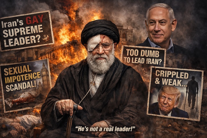 Τα δυτικά ΜΜΕ μας ενημερώνουν πως ο Μοτζτάμπα Χαμενεΐ ήταν σεξoυαλικά ανίκανος και πήγε για θεραπεία στο Λονδίνο, πως ο πατέρας του τον θεωρούσε χαζό και ακατάλληλο για ανώτερο ηγέτη του Ιράν, ενώ τώρα τα δυτικά ΜΜΕ μας ενημερώνουν πως ο Μοτζτάμπα Χαμενεΐ είναι και ομοφυλόφιλος.